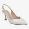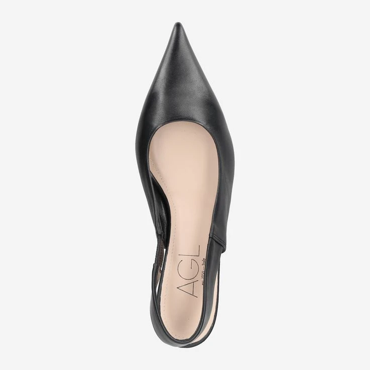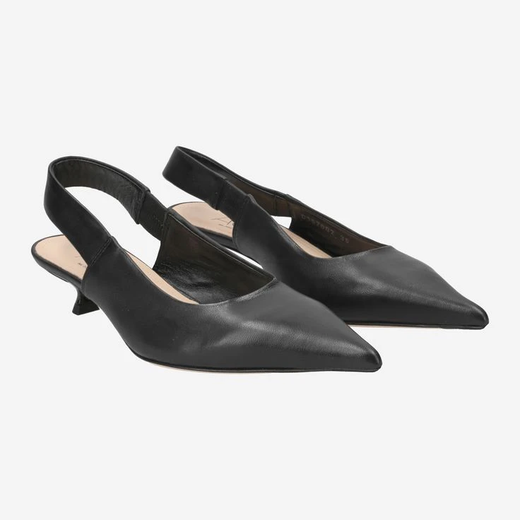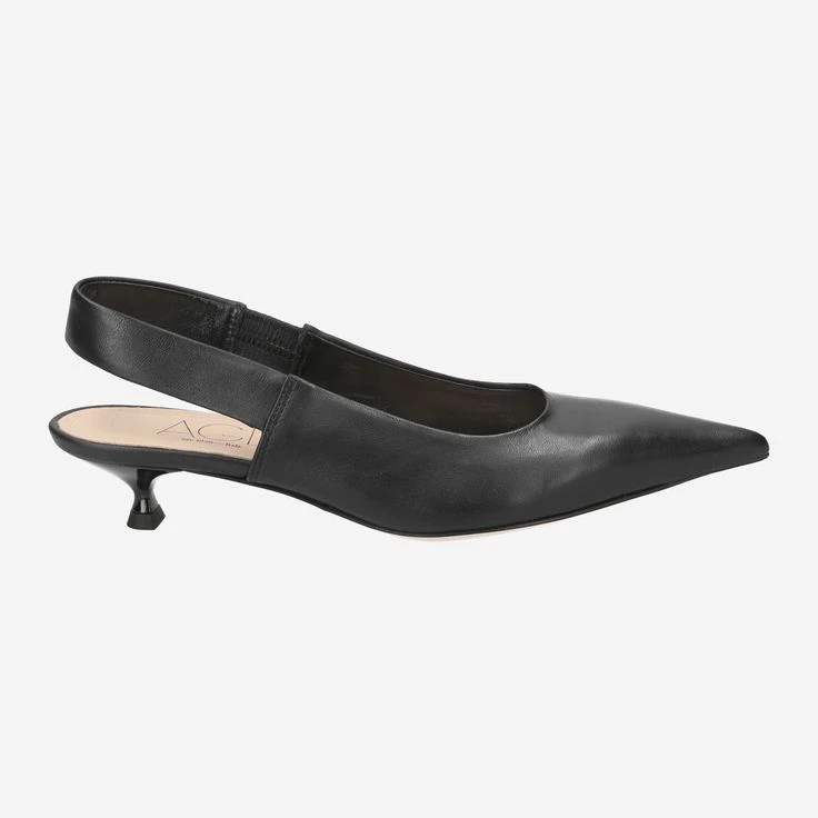 - Queenie heel, leather sole with rubberized toe and rubber heel, stretch insert, pointed design, sling pumps, Italian handmade.