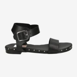 - silver colored stud applications, silver colored buckle, padded footbedt