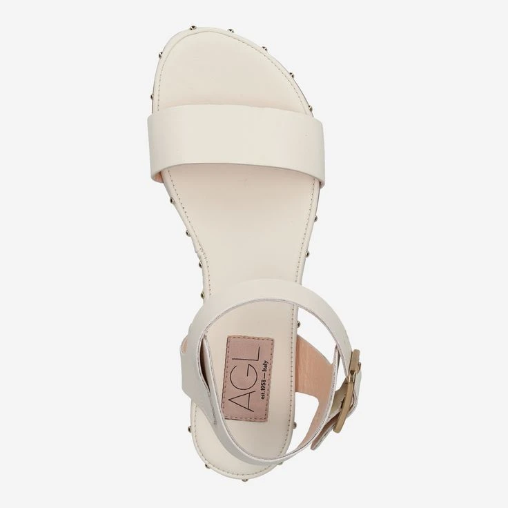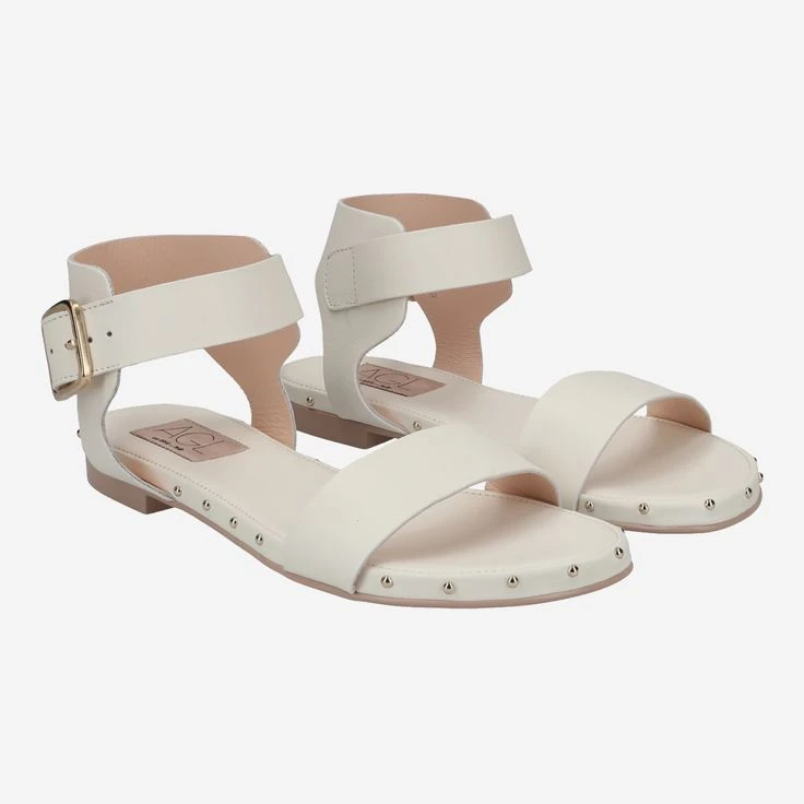 Enjoy the luxury of this Italian sandal. The manufacture AGL picks up a popular classic in the design, and refines the last with gold-colored micro-rivets. The supple, creamy white calfskin gives you the ideal balance of support and flexibility. Enjoy this luxury, you deserve it!