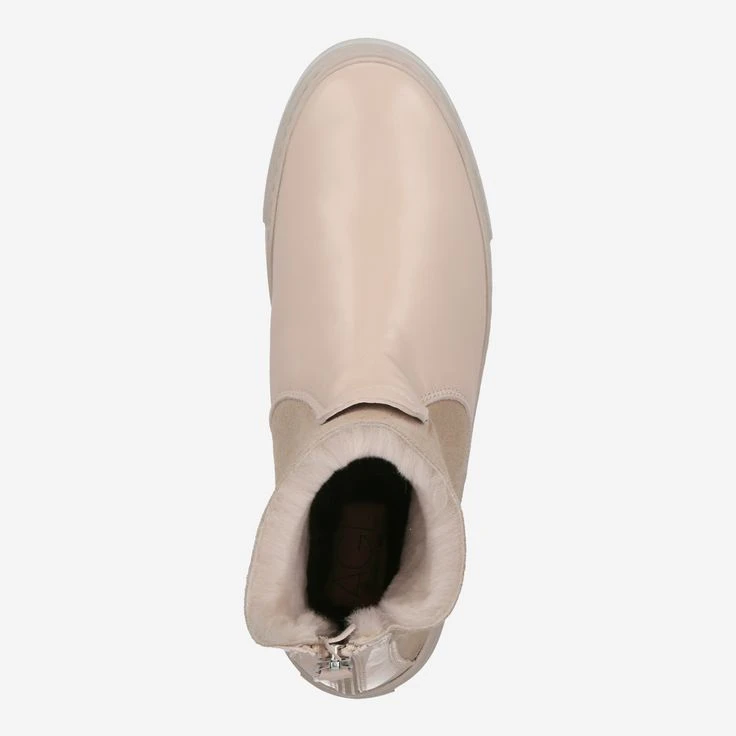 Enjoy the luxury of these Italian designer boots! The three sisters of AGL – have already shaped the international high fashion with your sophisticated designs, fresh ideas and creative designs. All the more exclusive is the – still – handmade, Italian way of making the shoes. This model „Meghan“ inspires with a delicate, powdery beige of the smooth leather, and a cuddly shaft area and lining of comfortably warm sheepskin. The sporty rubber sole is extra-light, and rounds off the ankle boot by the popular sneaker look innovative!