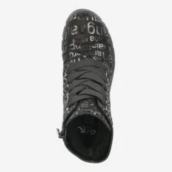 Noble and glamorous presents itself „Dover“, your new lace-up ankle boot of the brand ara. Shimmering prints in metallic look, as well as a fluffy interior, make this model the highlight of the season! The black nubuck leather is versatile to combine. Even on long days, the flexible lacing provides the necessary support. The comfortable block heel fits fashionably into the overall picture.