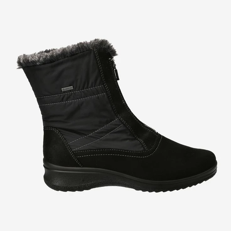 Form follows function! This phrase we know not only from the design and architecture – we know and love it also at ara! With this simple warm lining ankle boot you will be perfectly protected through the winter! With the help of the zipper you can put on and take off the shoe super easy and thanks to the Tecno-Rubber sole you will have a particularly comfortable feeling while walking. The Gore-Tex membrane is breathable and water-repellent at the same time. What more could a woman want?