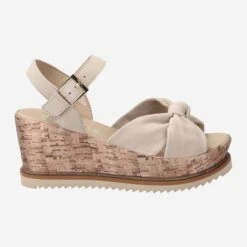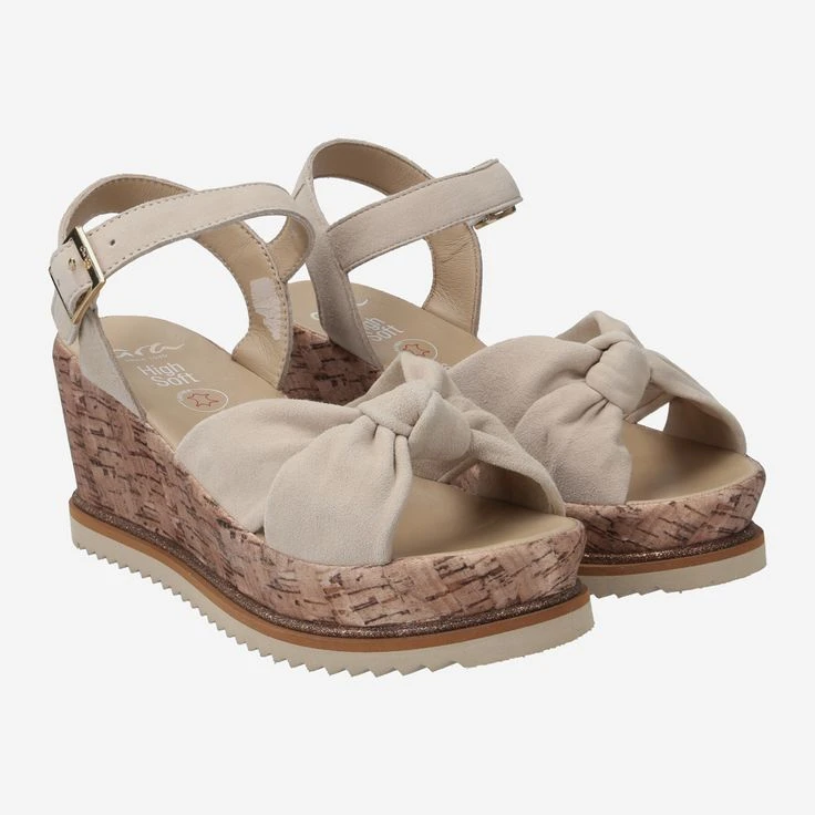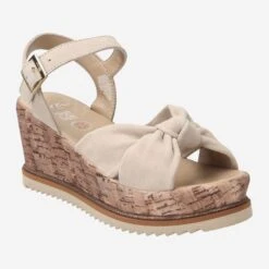- Metal closure, velvet covered wedge heel in cork look, platform sole, logo embossing, leather straps in knot look, stretch insert, glitter strip , soft padded insole, very comfortable walking feeling, breathable