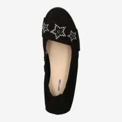 Perlato even brings stars from the sky for its demanding wearers. The chic ballerina of the Portuguese brand Perlato convinces with its feminine appearance. The timeless suede in black is decorated on the cap by a bar with stars made of rhinestones. Coming from the Soft Line collection, the shoe wears wonderfully soft and light.