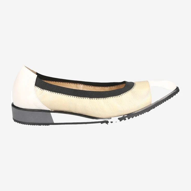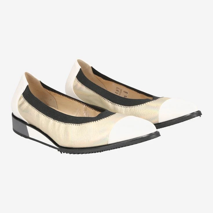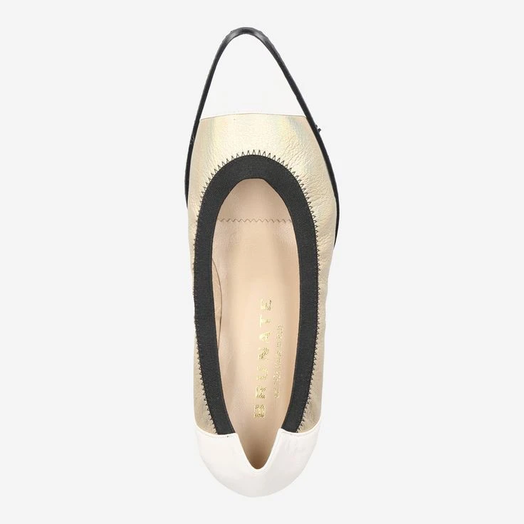 Look forward to this exciting ballerina of the Italian manufacture Brunate! The elegant design and the mix of white smooth leather and coated, gold-colored leather makes the model „Bianco“ the highlight of your new outfits! The sporty wedge heel additionally enhances the look, and rounds off the style mix perfectly. So fashion is really fun!