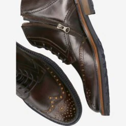 - Zipper, decorative perforation, lyra perforation, decorative stitching, sewn-through sole, breathable, stylistic elements of a Budapest shoe