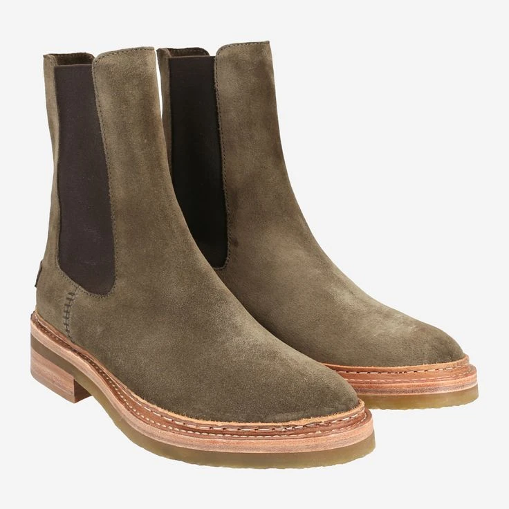Enjoy the casual casual style of Shabbies Amsterdam! The outstanding quality of the processed materials distinguishes this Chelsea boot made of green suede. Stretch inserts on the side allow you a practical entry. The non-slip sole made of natural rubber gives you optimal grip, and rounds off the VIntage character of this model perfectly!