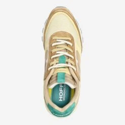 „Small groupe of people whose customs or traditions are the image of a bygone era that is still present.“ adorns – next to some tribal symbols – the picture print of this sneaker by Hoff. (Translated: Groups of people whose customs or traditions are the image of a bygone era that is still present). The colors of „Madagascar“ are also inspired by the island nation in Indonesia: lush green, mysterious brown mountains and the blue sea invite you to dream!