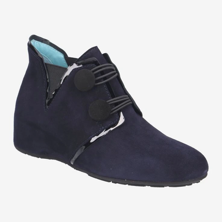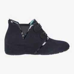 - hidden wedge heel, two button closures, patent leather details, stretch inserts, breathable