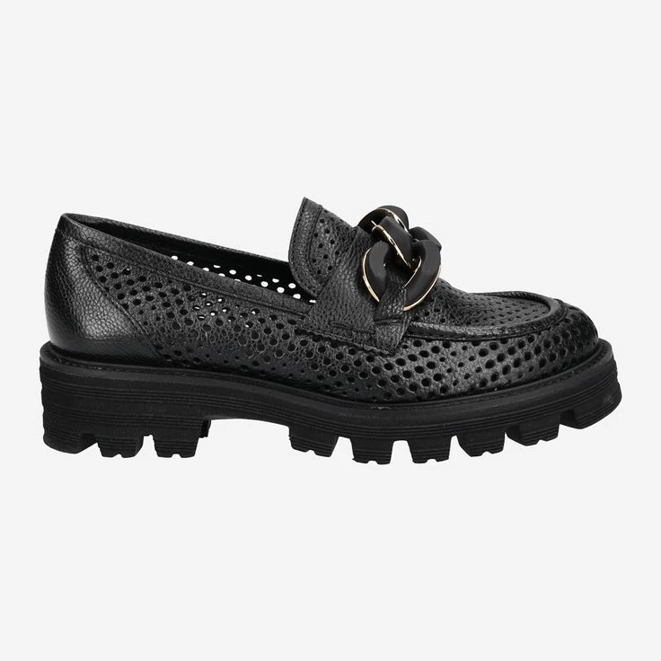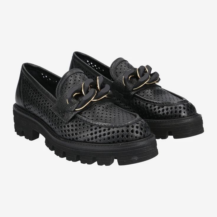 - Platform sole, block heel, loafer application, breathable, semi-transparent due to perforations, chain application / statement loafer