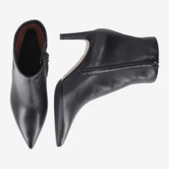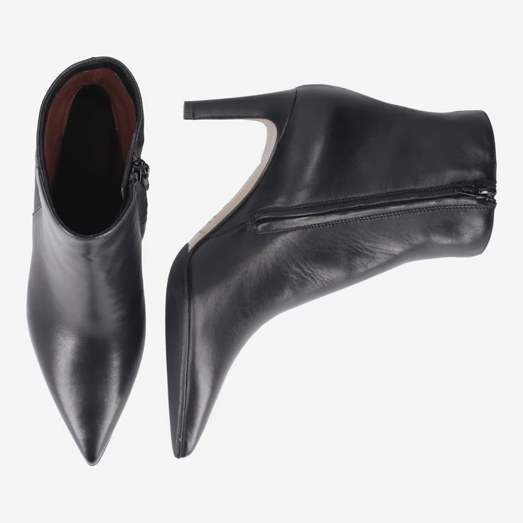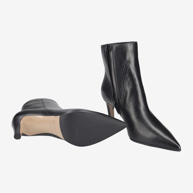 - Zipper closure, spiked heel, 1/2 leather sole with rubberized treads, pointed design, leather covered heel, breathable.