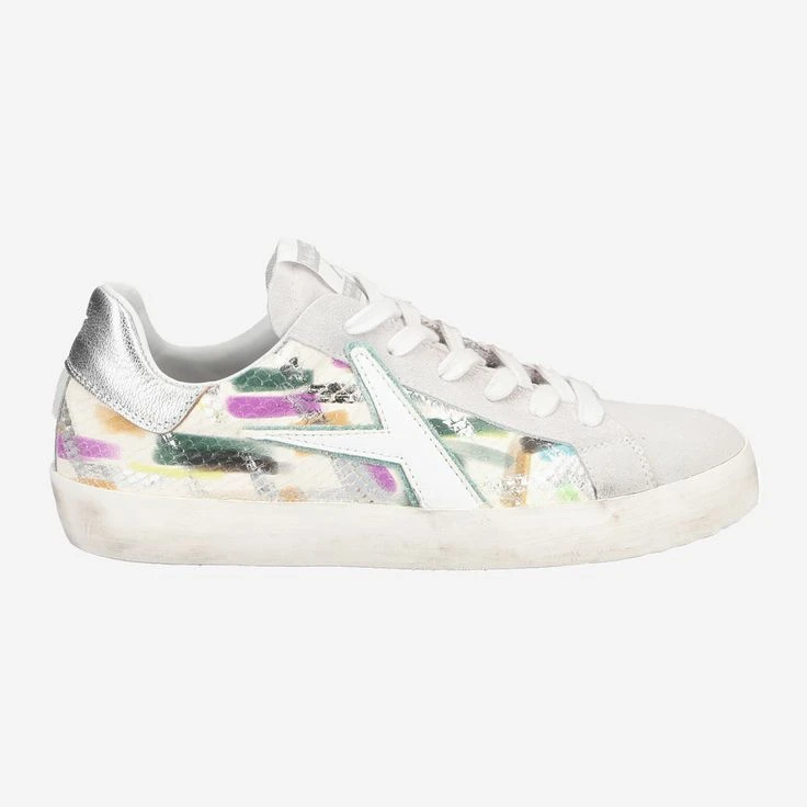 Wild animal style – sporty sneaker or hip vintage look? Here’s the total package! With Archivio22 you can enjoy your very own, expressive style! The Italian manufacturer also skillfully relies on contrasts, because these make the look really exciting! This sneaker made of white suede is refined by leather in reptile look, and set in exciting contrast by a casual used-look sole. This model is a small, playful declaration of love for fashion as an art form!