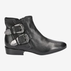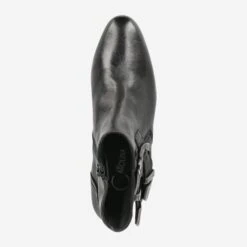 This fall we walk around with a rock attitude. This shows up in the form of ankle boots, ankle boots from Donna Carolina of course. This model impresses with high-quality smooth leather in timeless black and two silver-colored clasps with a wonderful floral embossing. Treat yourself to an expressive appearance with these great ankle boots.