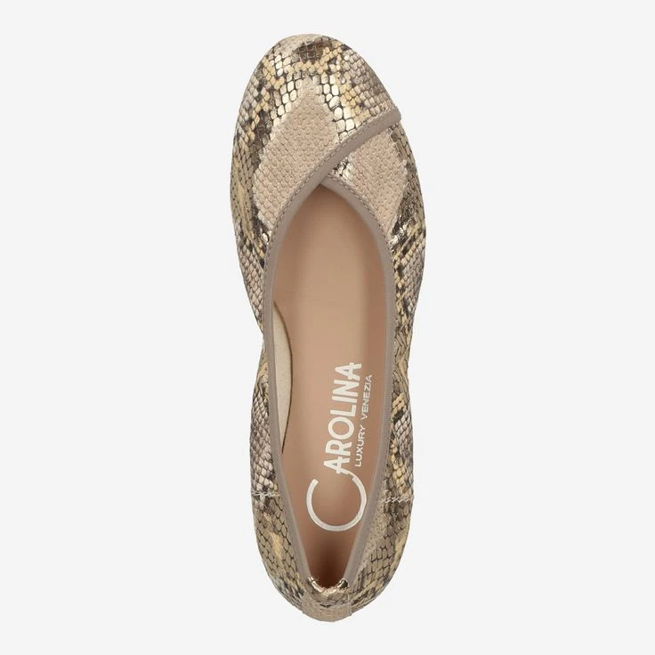 Summery and feminine – that’s how Donna Carolina presents these ballerinas in trendy leather with a cool reptile look. A pleasant stretch insert contributes to your wearing comfort. Combine airy pants, or a summer skirt and you are perfectly styled for the warm days.