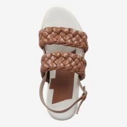 Turn your walk into a sassy, hip catwalk! This brown platform sandal from the Italian luxury manufacturer Donna Carolina brings swing and stylish expression to your look! The braided smooth leather of the straps sets a playful contrast to the straight, clear design. This makes the summer twice as much fun!