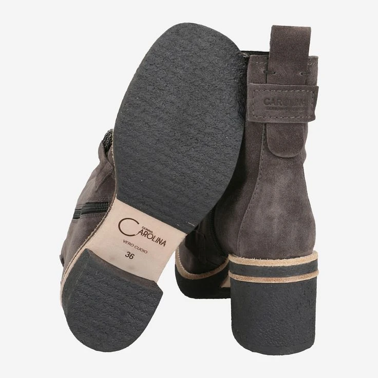 Extravagant details, contrasts and the flair of Italian craftsmanship makes this boot the eye-catcher of the season! Donna Carolina manufactures this cream piece of stone gray suede. A zipper serves your comfortable entry. The jewelry application in loafer style creates a balancing act between classy and rock look.