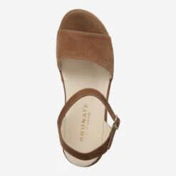Brunate makes this sandal with high quality and precise workmanship. The brown suede flexibly adapts to your foot, and additionally refines the wedge-shaped heel. The timeless design makes this model a popular companion for numerous upcoming summer seasons!