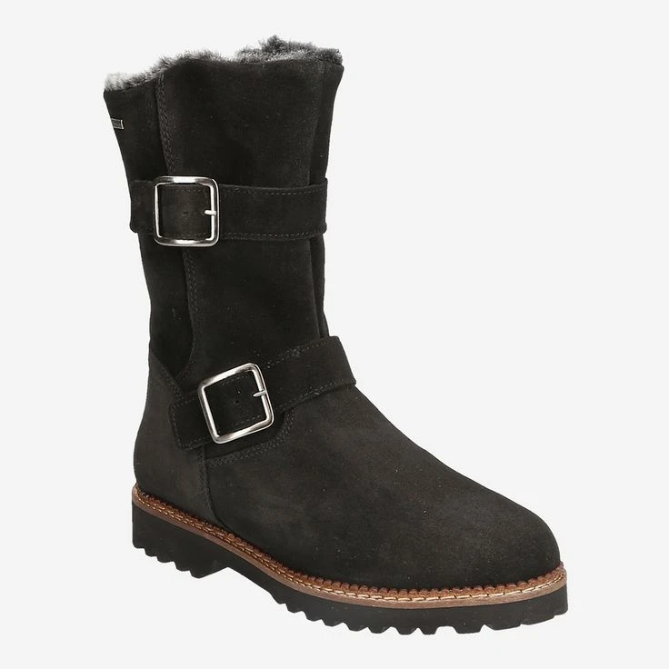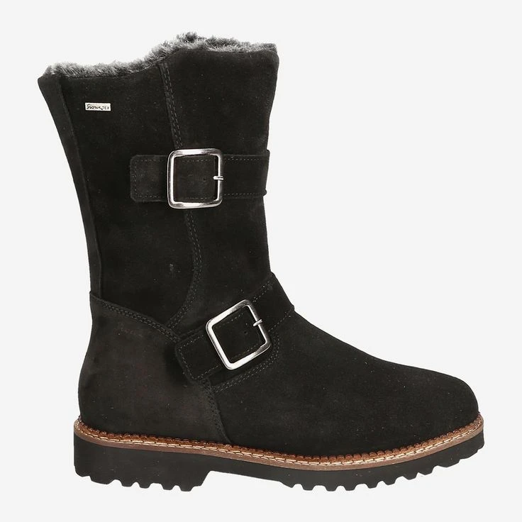 This super nice winter boot from Sioux makes you want to snow and cold! The two buckles stand out visually from the robust suede and thus loosen up the shoe visually. The shoe is waterproof, breathable, has stretch inserts and a profile sole that gives you security. Great!