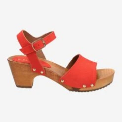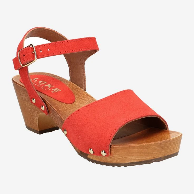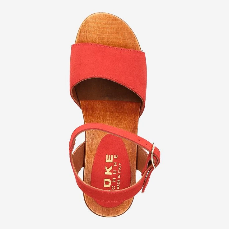 This great red sandal awakens spring fever. The model of shoes LĂĽke inspires in addition to the feminine look also by special features such as the wooden sole. With small rubber elements, your gait is skillfully cushioned. Thanks to the movable insert in the ball area, a comfortable rolling is best guaranteed.