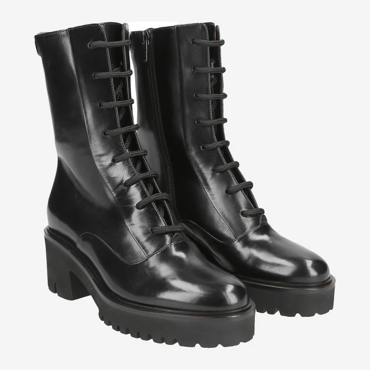 This noble designer ankle boot from the Italian manufacturer Trumans convinces with its deep black, high-gloss smooth leather. The feminine design is contrasted by the wide block heel, and offers you a variety of combination options in addition to outstanding comfort. Enjoy genuine craftsmanship, outstanding quality and exquisite leather.