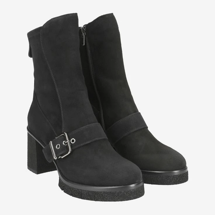 Enjoy Italian lifestyle with this luxury ankle boot from Trumans! The noble brand manufactures according to traditional craftsmanship enchanting masterpieces that inspire every fashion-loving lady! This elegant ankle boot is made of black suede, and complemented by a buttery soft lining. You get a seductive look that enjoys a slightly rocking touch thanks to the decorative buckle. Timeless – refined and simply fantastically noble.