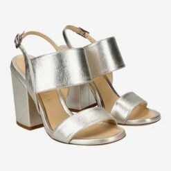 This sandal provides a fashion update in your shoe wardrobe. The monochrome design in silver perfectly highlights the open feminine silhouette of the shoe. Contrast is provided by the massive block heel and wide straps without being obtrusive. With this model you are guaranteed a cosmopolitan look at the next party!