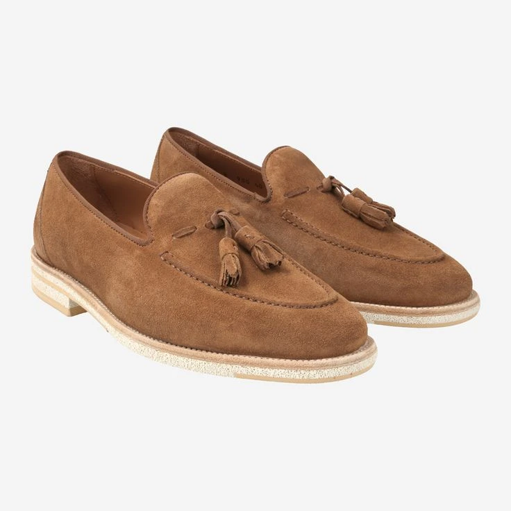 - Sewn-through sole, decorative stitching, contrast stitching, tassel application, breathable, piped hem (textile), decorative stitching, breathable