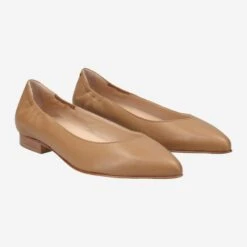 - Stretch inserts, breathable, 1/2 leather sole with rubberized tread and rubber heel, pointed shape, handmade in Italy, trendy color cognac