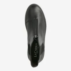 This black Chelsea boot from La Cabala is ideal for autumn and winter. The simple design looks very elegant and classic. The front zipper adds a casual accent and is also practical for easy entry and exit. The flat sole provides a comfortable walking feeling. For style-conscious ladies just right!