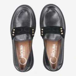 - Block heel, logo embossing, stud applications, loafer application, breathable