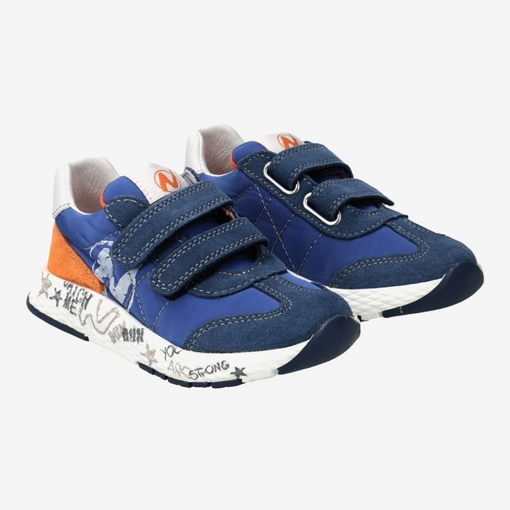 - Exchangeable footbed, suitable for insoles / customizable, Velcro closures, decorative stitching, contrast stitching, logo embossing, logo application, padded upper, decorative lettering along the side of the sole.