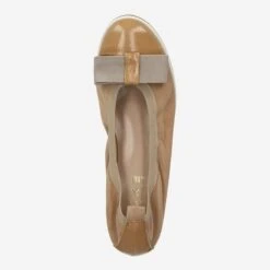 Everyone loves ballerinas! Usually we know them plain, but if the fashionable shoes, like this model from Schuhe LĂĽke, are immediately equipped with different trends, you will certainly become the favorite shoe of the season! The new decade is all about nature and trend colors are, for example, colors that relate to warm earth tones. Beige and brown tones, for example. The combination of different types of leather is also one of the new trends. Another highlight is the foot cap made of patent leather. The feminine bow application completes the look. A great choice!