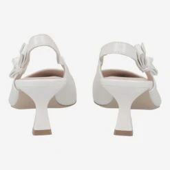 - Metal closure with flexible rubber on strap, queenie heel, jeweled applique with glitter stones on strap, delicate mother-of-pearl shimmer in upper, breathable
