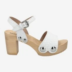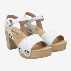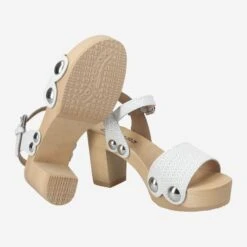 - Metal closure, block heel, platform sole in front 35 mm, flexible rubber joint for comfort, oversized stud applications, breathable