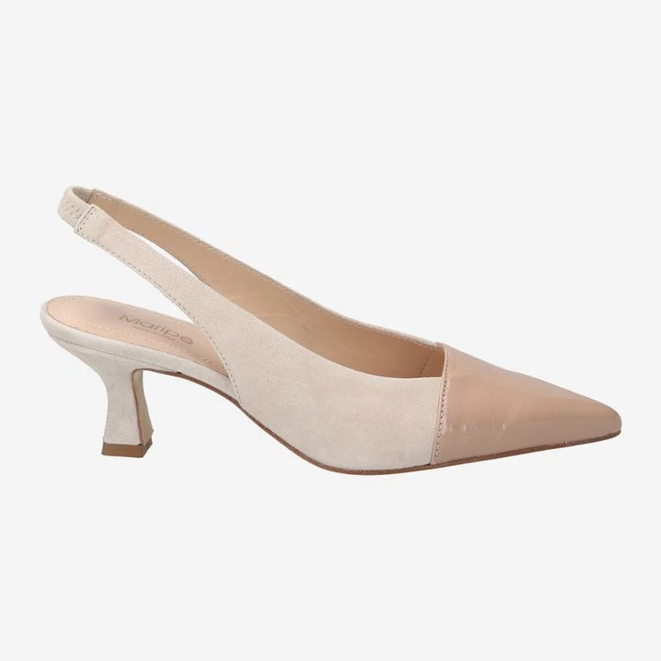 Feminine, elegant and seductively beautiful is the new sling pump THORA by Maripé. Through the creamy rosé it harmonizes wonderfully with your skin tone and conjures up visually endless long legs. Simply a dream! The soft suede is excitingly complemented by the patent leather toe. The heel strap flatters your chocolate side and is perfectly staged by the delicate queenie heel! A true ode to femininity!