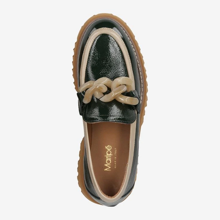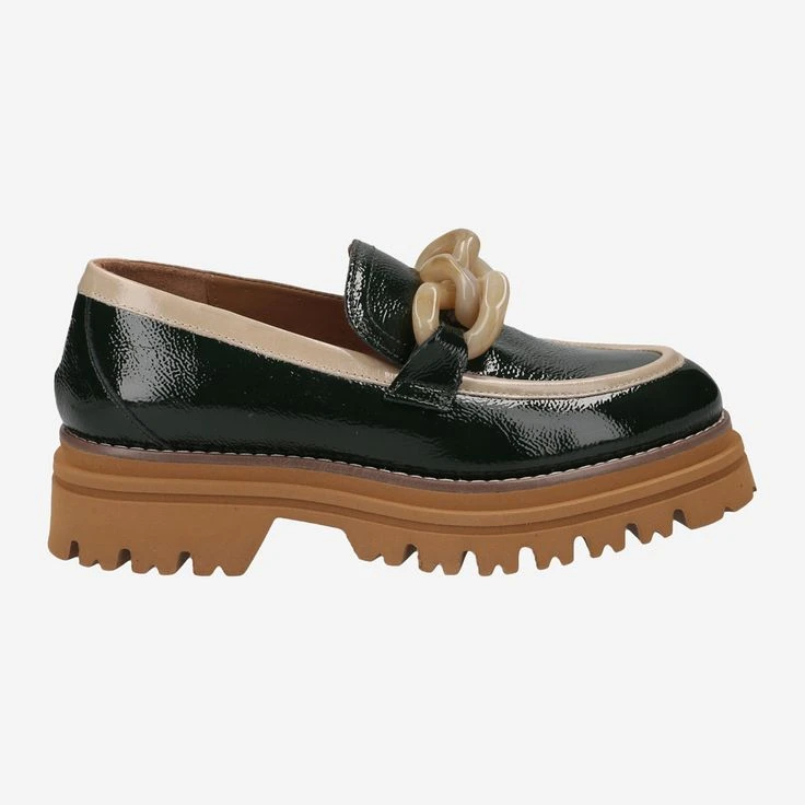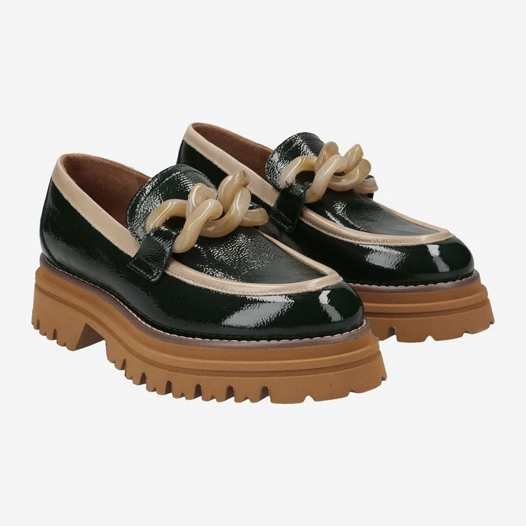 - Platform sole, contrast stitching, loafer application of oversized chain elements (statement shoe), breathable