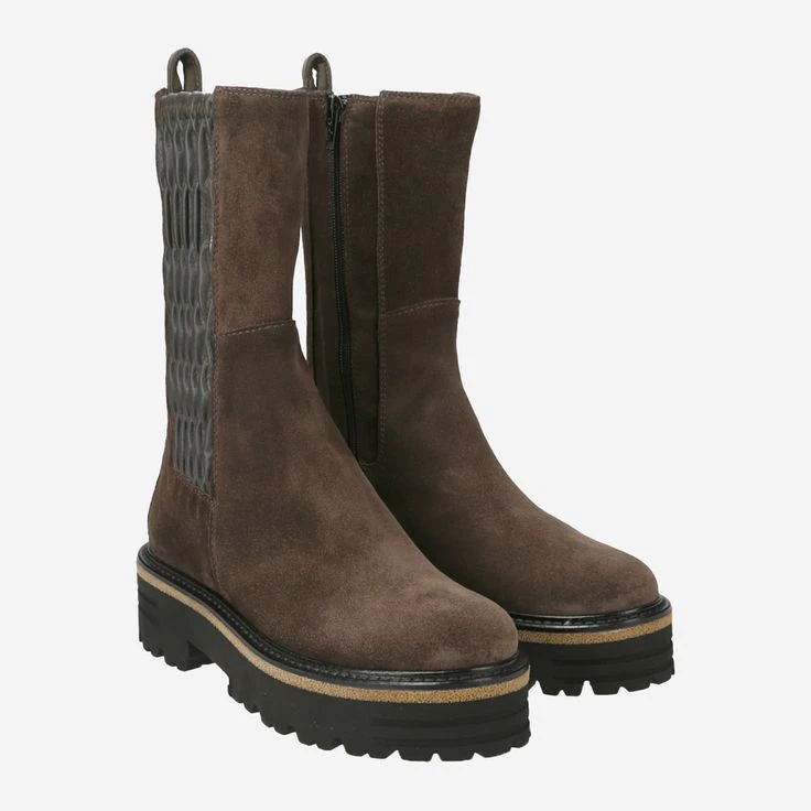Are you looking for something special? With this expressive statement boot from Maripé you enjoy exclusive design, handmade quality and finest, dark green suede! „Urbino Var.1“ inspires with platform, a bright contrast strip, and a really casual stretch insert!