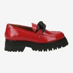 Finally! Statement character now also moves into classic business loafers! Refreshing, playful and exciting at the same time! Here you enjoy Italian manufacturing, precious nappa leather in patent look and the ultimate statement detail: a large chain element! The manufacturer Maripé reaches into the color pot with passion for the penny loafer: RED sets exactly the right signal: FASHIONALARM!