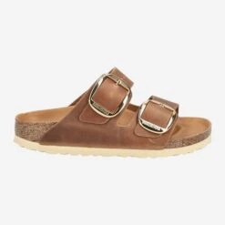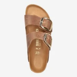 Birkenstock has been inspiring young and old for decades – in the meantime, the traditional German manufacturer has achieved cult status! The upper of the „Arizona Big Buckle“ model is made of cognac brown, particularly thick, oiled nubuck leather. The two, gold-colored thorn buckles serve as a glamorous highlight, which serve as an optimal eye-catcher due to their size! With this mule Birkenstock shows exemplary that it also defines unique trends in this century!