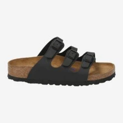 Enjoy the fabulous comfort of this cult sandal „Florida“ from Birkenstock! Made in traditional manufacturing, this model convinces with the black straps made of synthetic, easy-care Birko-Flor®. The comfortable footbed is wonderfully pleasant to wear due to an additional soft bedding. In addition to the features of the original footbed, this has an additional show insole. The millions of tiny air bubbles cushion optimally, and give you, in addition to the anatomical shape, dreamlike comfort. Trust in this quality, which has proven itself since 1774.
