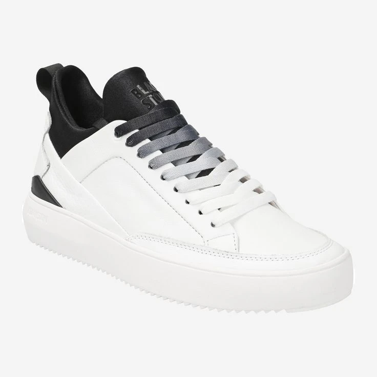 - Exchangeable footbed, suitable for insoles, logo embossing, entry loop, decorative stitching, soft textile shaft, laces with ombre color gradient