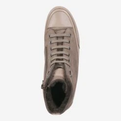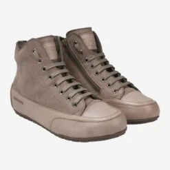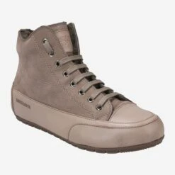 This cult sneaker from Candice Cooper is also suitable for cold winter days! The lined model „Plus Fur Stone“ inspires with the brand-typical casual look of beige smooth leather and fine-grained nubuck leather. A cuddly soft lining made of 95% wool (and 5% synthetic) complements the sporty casual style. A side zipper makes getting into this high-top sneaker a breeze. The raised driver sole protects the heel area from abrasion, and rounds off the dynamics of the overall image sleek.