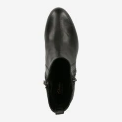 These timeless, elegant ladies ankle boots made of premium smooth leather in black fit any occasion. The GORE-TEX® technology ensures pleasantly dry feet and makes these boots the perfect companion even in rainy weather. The side zipper provides an elegant look and is practical at the same time. In addition, an inner stretch insert behind the zipper provides protection. The medium-high block heel of 55 mm makes for great long legs. The 14 cm shaft height is the perfect height for many looks. With the „Ceara Emi“ model from Clarks you will enjoy elegant, classic and practical ankle boots.