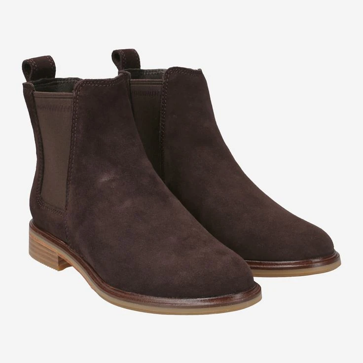 With „Clarkdale Arlo“ you will enjoy a fantastically versatile ankle boot, through which you can magically complement your outfits! The English manufacturer Clarks uses the finest espresso brown suede for this all-rounder. The lateral stretch inserts give you a pleasant, flexible walking feeling!