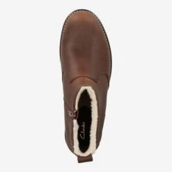 The robust, profiled sole of this Clarks ankle boot jumps here directly into the eye. However, the brown premium leather doesn’t make a bad impression with its fine color gradients, and the mid-height heel puts you at a comfortable height. The slip-resistant rubber sole ensures a secure step. The fluffy lining, consisting of faux fur, warms even on the coldest days and the soft insole guarantees optimal shock absorption while walking.