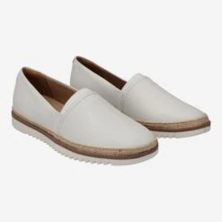Classic like a loafer and summery like an espadrille! This summer shoe will inspire you! Clarks processed in model white smooth leather, which is complemented by a soft textile lining. „Serena Paige“ has a matching color, barely visible rubber hem at the back of the foot, which gives you pleasant comfort.