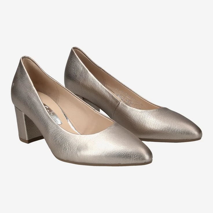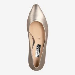 - leather covered block heel, almond shaped toe, breathable, shimmers silver or gold depending on the incidence of light