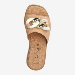 - Loafer style jewelry application in oversized chain look, natural cork footbed for cushioning and comfort, breathable, statement look.