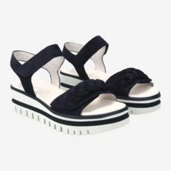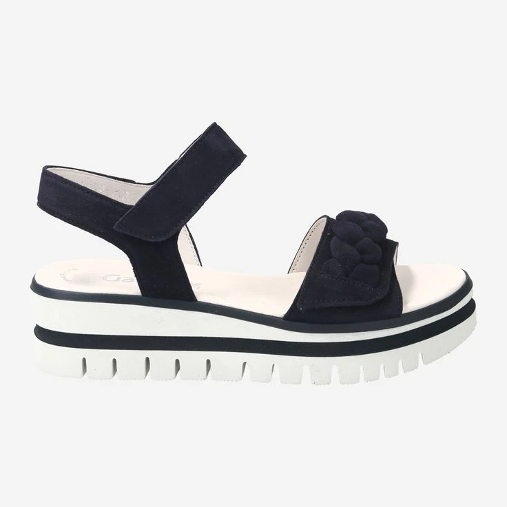 - Individually adjustable, velcro closures, platform sole, wedge heel, leather application braided, decorative stitching