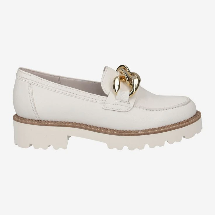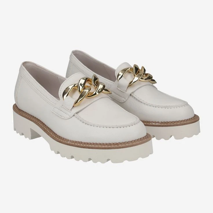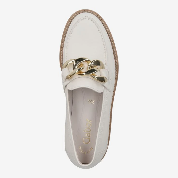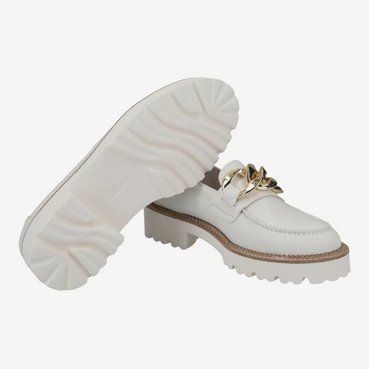 - Block heel, Loafer application from gold-colored chain elements, , Contrast strip, Decorative seams, Breathable, Best Fitting insole